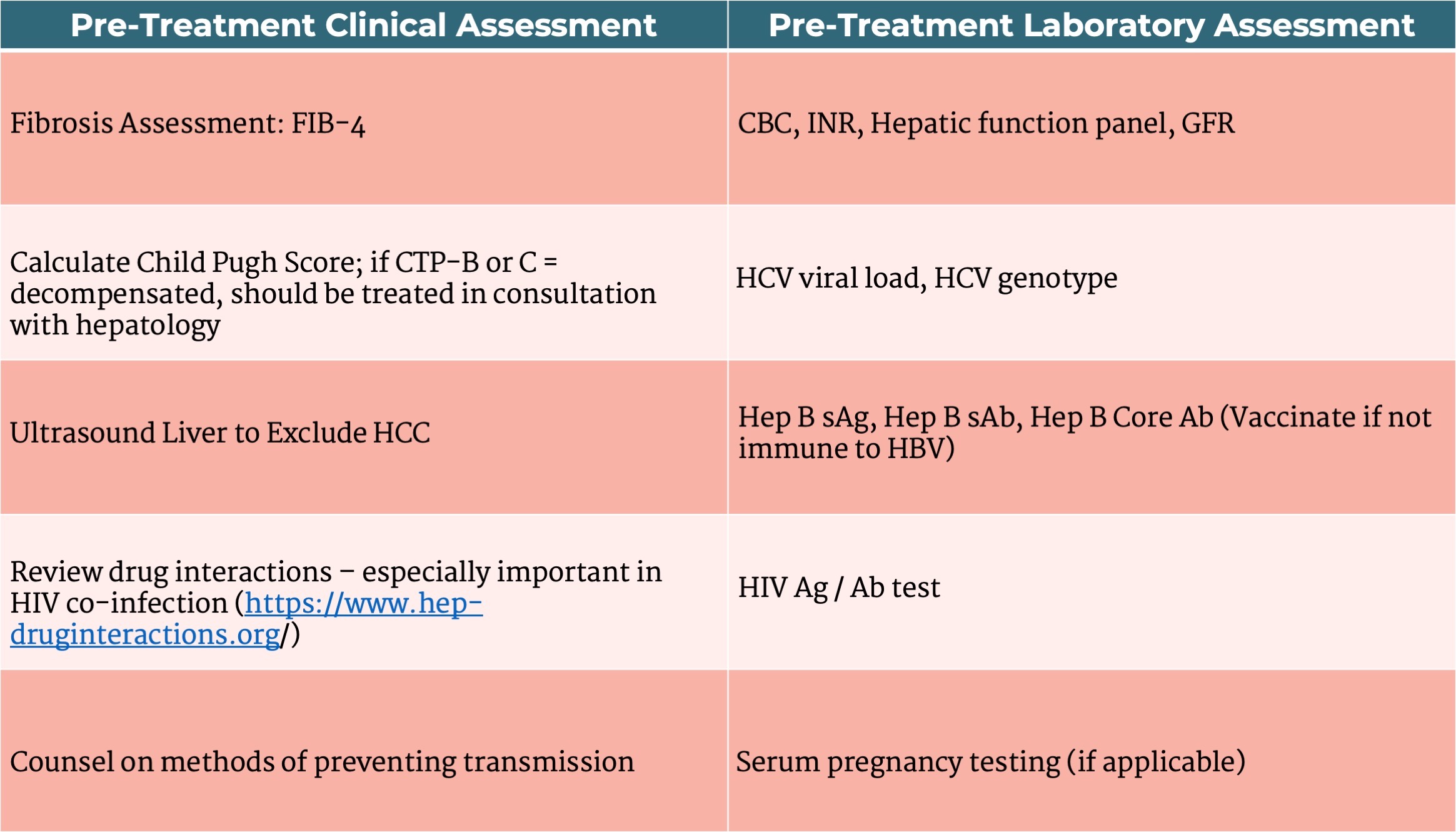 Currently, hepatitis C treatment is contraindicated in patients who are pregnant or breastfeeding due to a lack of studies demonstrating their safety. Treatment of patients with decompensated cirrhosis, HIV and/or HBV co-infection, prior liver transplantation, HCC, ESRD may require additional considerations. Patients with a short life expectancy due to advanced liver disease are recommended to be managed in consultation with a liver specialist.