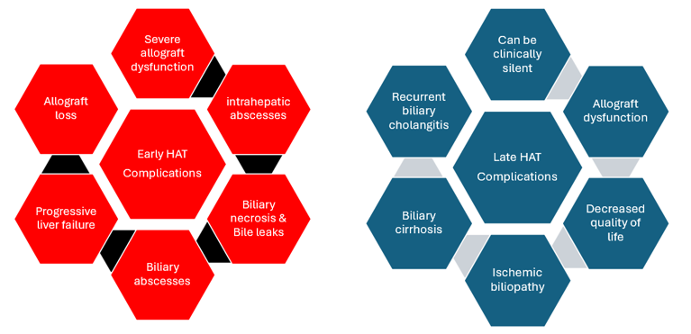 Hepatic artery thrombosis (HAT) is one of the most feared complications in liver transplantation. HAT is associated with ischemic cholangiopathy, biliary abscesses and sepsis, graft loss and need for re-transplantation, and death. HAT can be classified as either early, within thirty days or up to two months of liver transplant, or late HAT, which is beyond this time period. The temporal relationship in early versus late HAT is important as there are significant differences in risk factors, clinical presentation, therapeutic options, and outcomes. The overall incidence of HAT is variable but has been observed in prior studies to be 5%, with a higher incidence in pediatric patients who receive more split grafts from deceased and living donors. HAT is the most common vascular complication following liver transplantation with a mortality rate as high as 50% in early HAT. It is important to note that early HAT is one of the most common causes of early graft loss in liver transplant. This post aims to summarize the pathophysiological changes and risks associated with HAT, review its complications, and current treatment strategies.