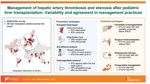 Figure 3. Summary of prophylactic management and treatment strategies for hepatic artery thrombosis and hepatic artery stenosis from Li et al. in a pediatric population.