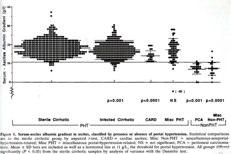 Prior to the SAAG, there was an exudate-transudate concept applied to the classification of ascites called the ascitic fluid total protein concentration (AFTP). In 1992, Runyon et al compared this older concept to the SAAG calculation in a prospective study of patients with ascites. A total of 901 paired serum and ascitic fluid samples were collected from patients with all forms of ascites. AFTP only classified the cause of the ascites about 56% of the time, thus, it was suggested that SAAG be used instead.