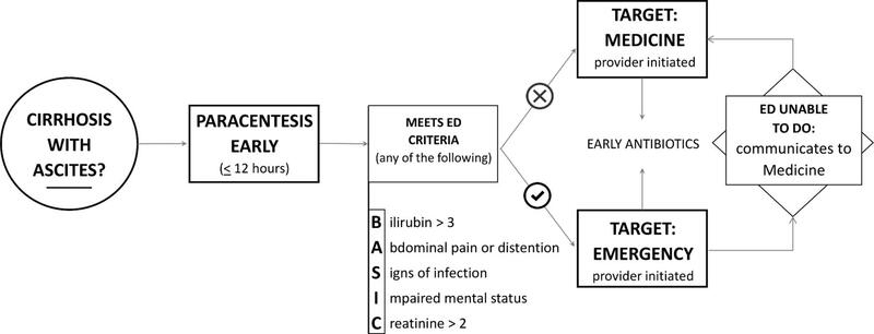 Some efforts in quality improvement have focused on members of the admitting team—with educational programs and best practice advisories. These interventions have successfully improved the number of early paracenteses performed.