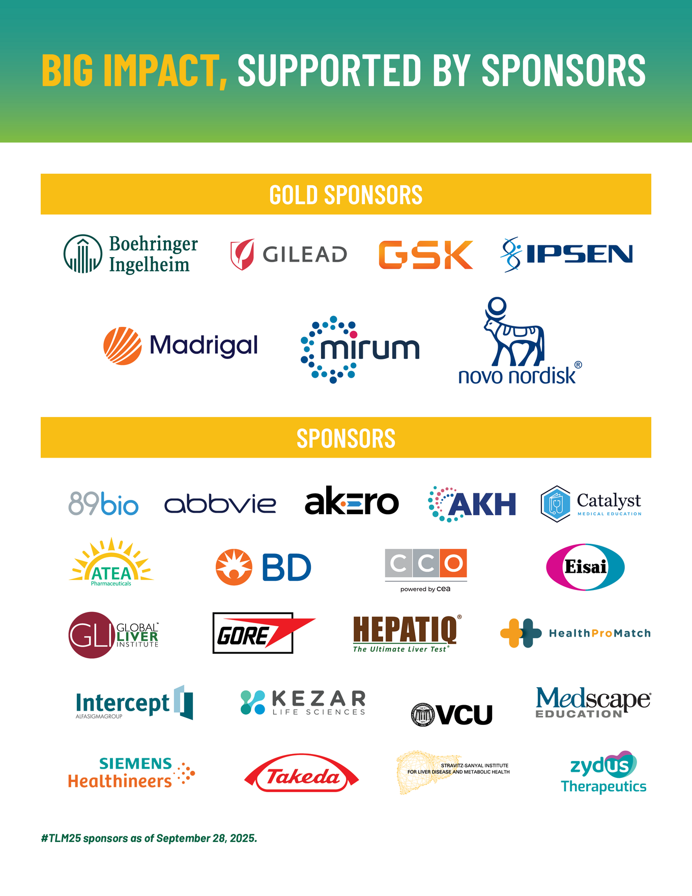 Discover the latest innovations in hepatology by visiting the Exhibit Hall, attending a Satellite Symposia or Theater Session, and thanking the sponsors who make it all possible. Explore all that TLM has to offer.